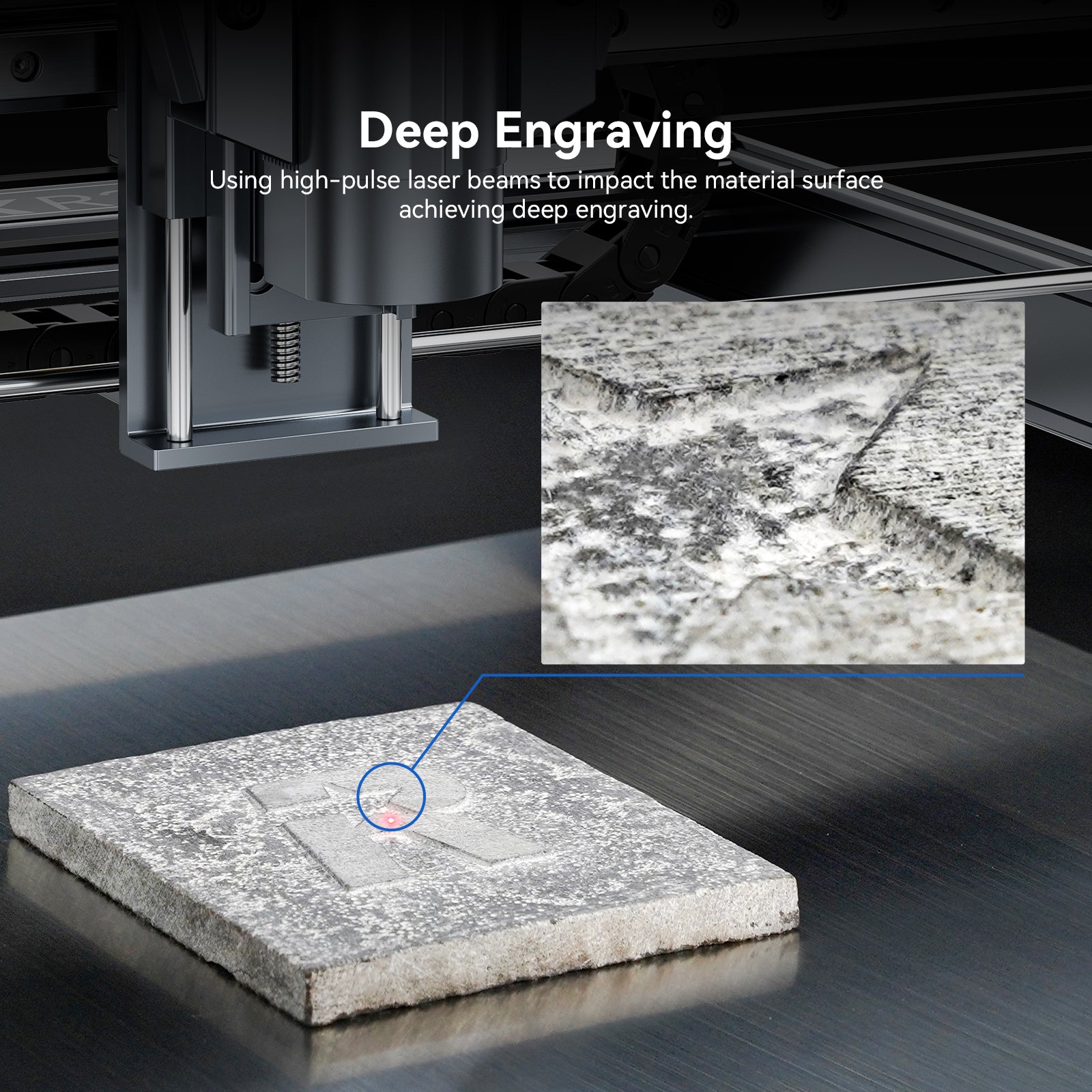 7, Deep Cutting: 1064nm infrared laser is ideally suitable for deep engraving in the neat slate plane to give a relief effect;